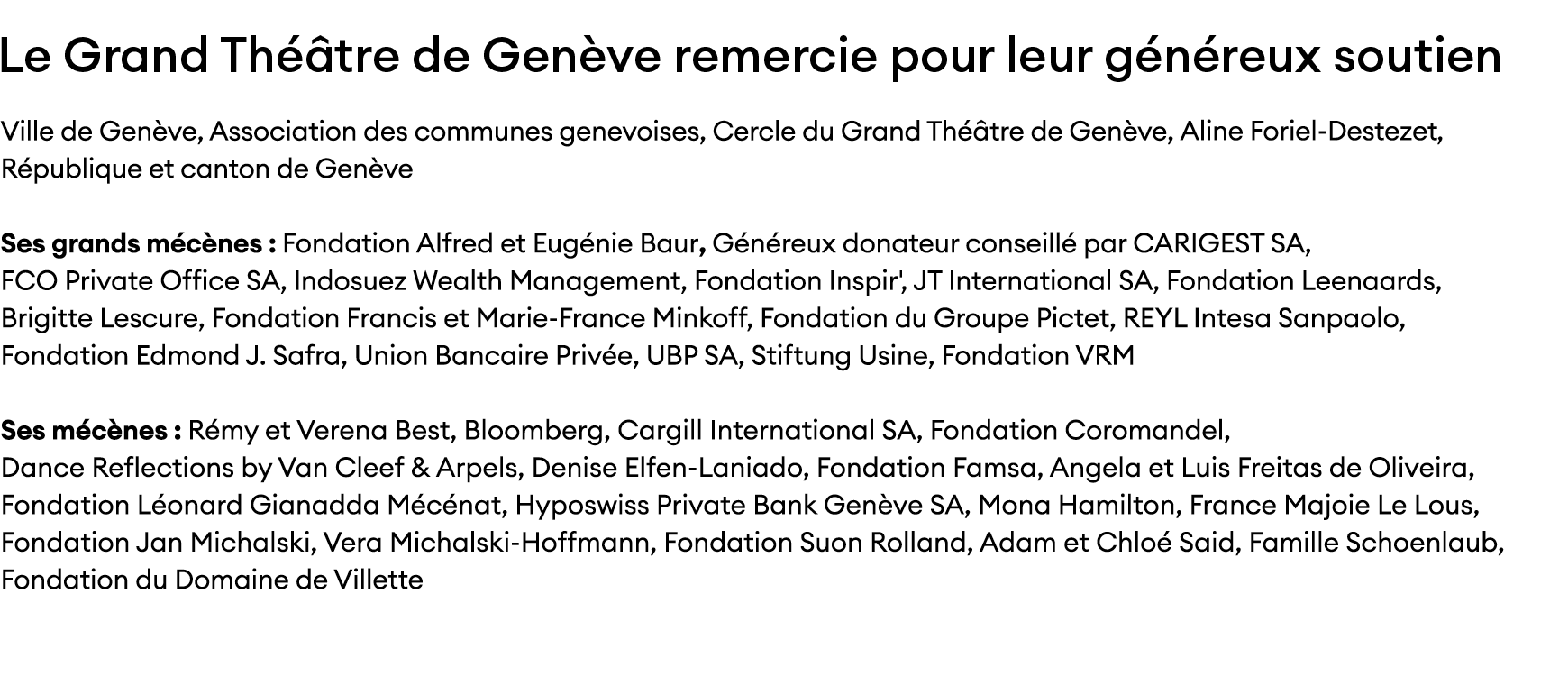 Whether you are an individual, a foundation or a company, your patronage can be built up according to your wishes, in close collaboration with the Grand Théâtre, to enhance your corporate or personal project. Join us to benefit not only from unique visibility and exceptional access to productions, but also to experience powerful emotions and unforgettable moments in the company of the great artists of our time!