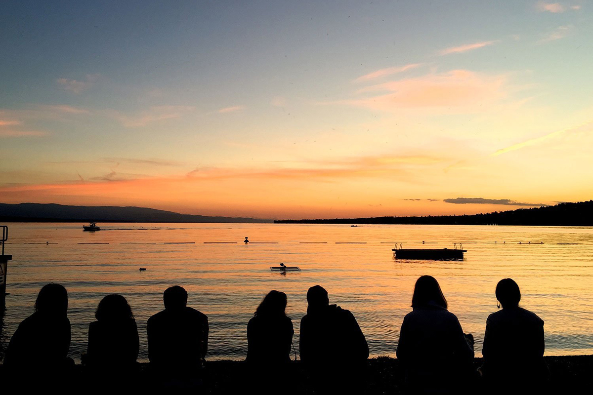 Sur la jetée des Bains des Pâquis, à l’abri en cas de pluie